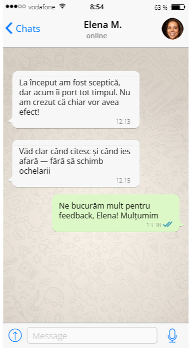 Am văzut personal cum acești ochelari au îmbunătățit viața pacienților mei: nu mai există schimburi continue între ochelari de citit și ochelari pentru distanță și nici oboseală vizuală după ore întregi de lucru la computer sau la volan. Unii pacienți, după ce i-au încercat, nu mai pot trăi fără ei și îi recomandă tuturor.